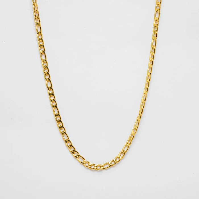 Håndlaget av et tykt lag 18 karat gull på rustfritt stål, veldig lett og vannavstøtende, vil vårt «Figaro-halskjede» ikke skuffe deg!