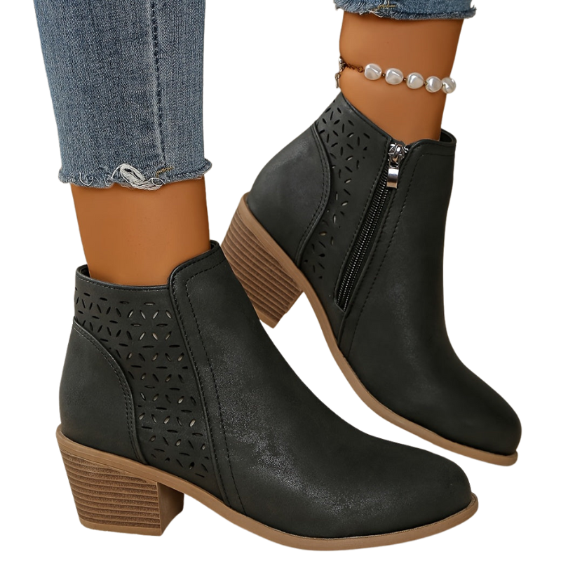 Tidløs eleganse – Subtilt laserskåret mønster og pen blokkheel gir et feminint, raffinert utseende.