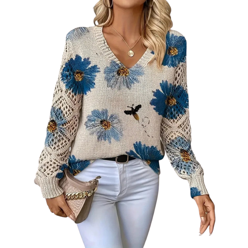 • Design: Blomstermønster, myk V-hals, luftige ermer, stram søm